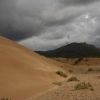 Zum Frühstück eine gute Portion Airag. Und das nach einer durchbellten Nacht. Aus Versehen klauen wir übrigens den Becher. Für's Reiten war 10 Uhr ausgemacht. Ab viertel nach 9 schlich der Mann ganz ungeduldig um die Jurte. Sogar die Pferdeauswahl musste von uns begutachtet werden. Erst waren wir noch an der Leine, dann auf einmal ohne, über Stock und Stein, naja eher Sand. Wir reiten gemütlich zur Düne, machen den alten Mann mit Fotos glücklich, ehe wir in einem großen Bogen (um dem Regen auszuweichen) Richtung Jurte zurückzukehren. Es macht uns großen Spaß, und nachdem wir die Pferde mit den Zügeln lenken können dürfen wir auch etwas traben. Das macht Spaß! Aber das Auto ist eifersüchtig, dass wir auf weniger PS umsteigen und zickt gewaltig. Nach unzähligen mongolischen Drehversuchen und einem gestauchten Handgelenk gings dann doch. Auf nach Hustai Nuruu. Unterwegs Evelyns erstes fleischloses Mittagessen. Massig Chips. Auf einmal sind wir da. Nur kein billiges Ger.Die wollen doch ernsthaft 39$. Aber nicht mit uns. Wir zelten! Missmutig! Aber wir zelten! Petrus hat ein Einsehen und der Nudelvorrat ist endlich weg! Ungemütliches Beisammensitzen im Auto. Der Fahrer ist weg!
